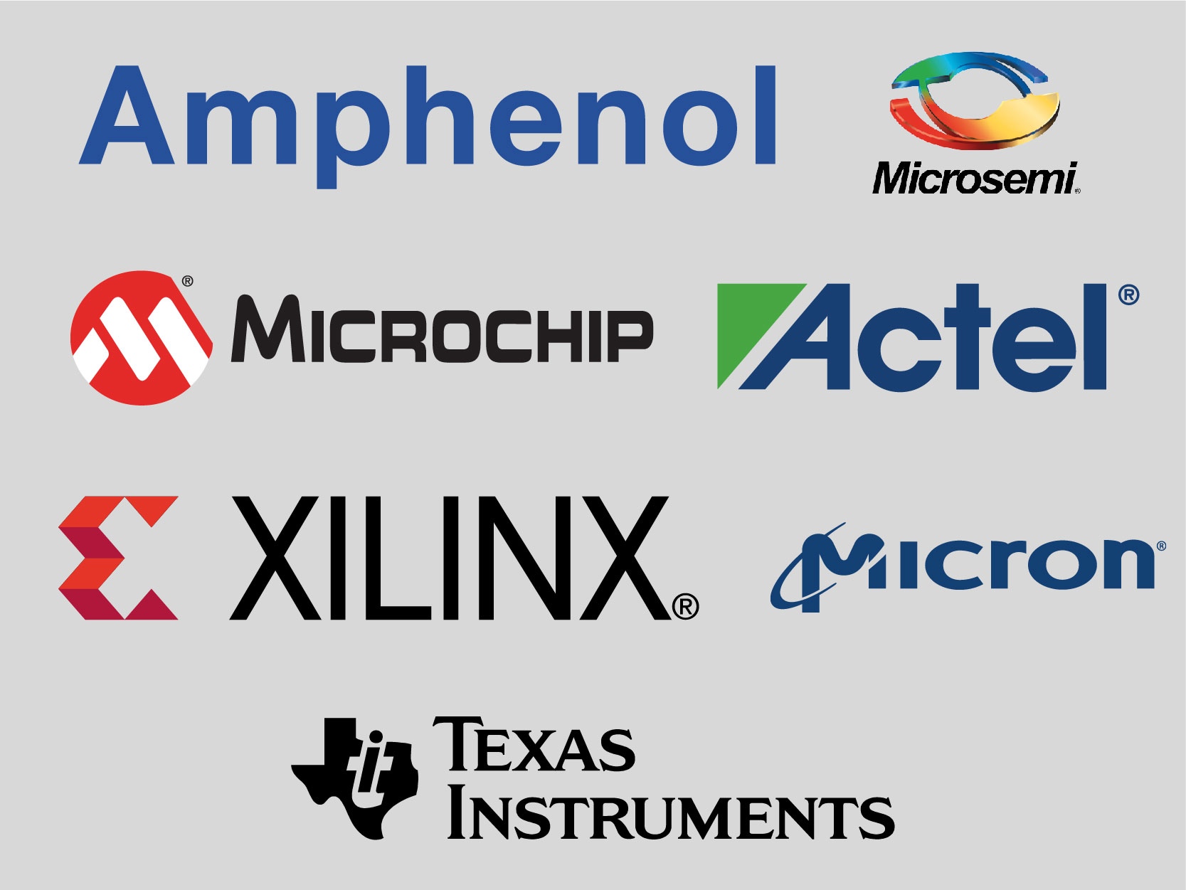 Линейка поставок: Altera Amphenol, Actel (Microsemi) Analog Devices, Xilinx Glenair, Texas Instruments Micron, Microchip E2V, Souriau Cypress Semiconductor, Marvell Broadcom Corp, MACOM Cree (Wolfspeed).