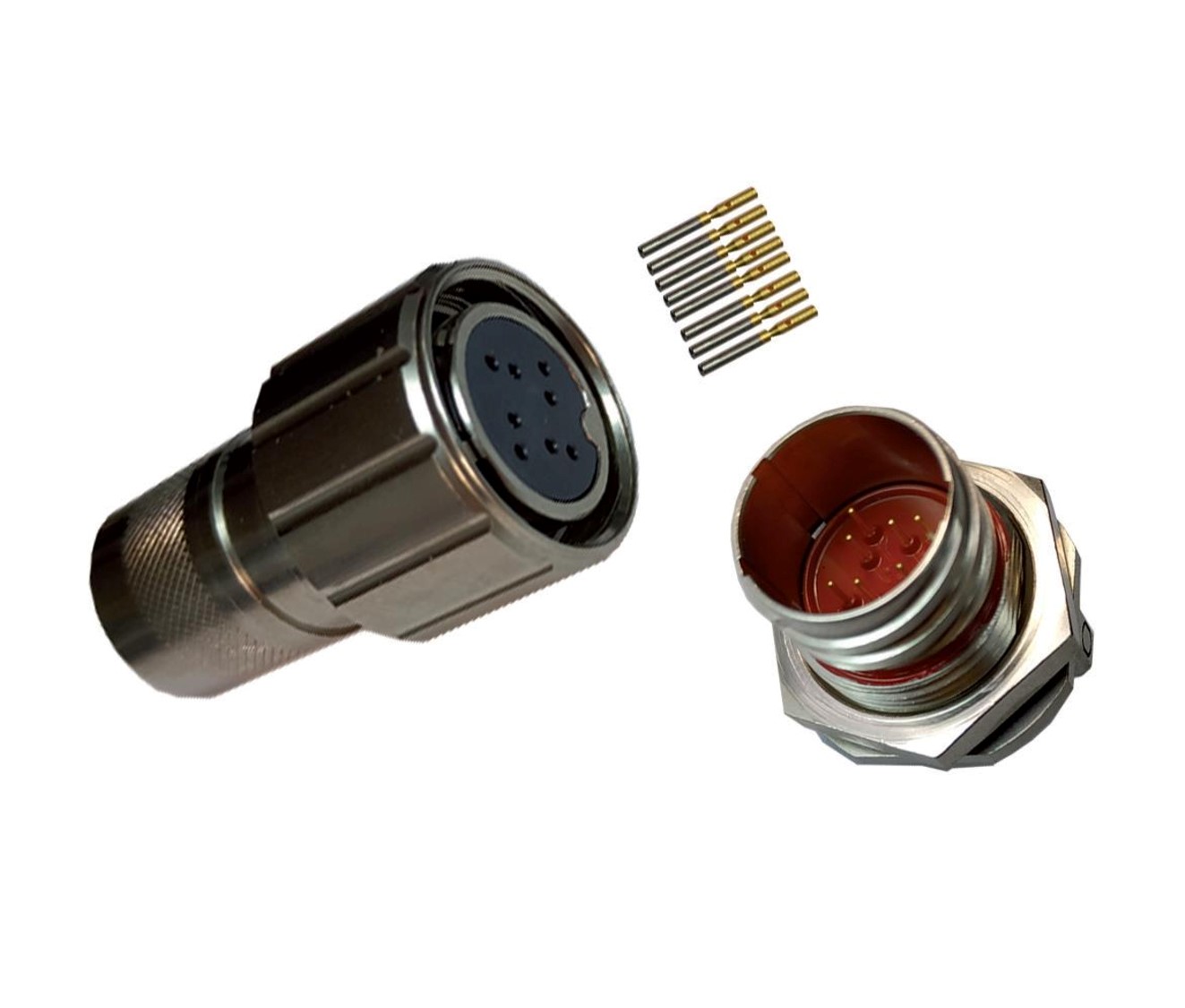 Соединители электрические цилиндрические для объемного (розетка) и печатного (вилка) монтажа резьбового сочленения, предназначены для работы в электрических цепях постоянного,